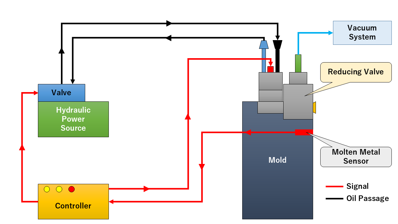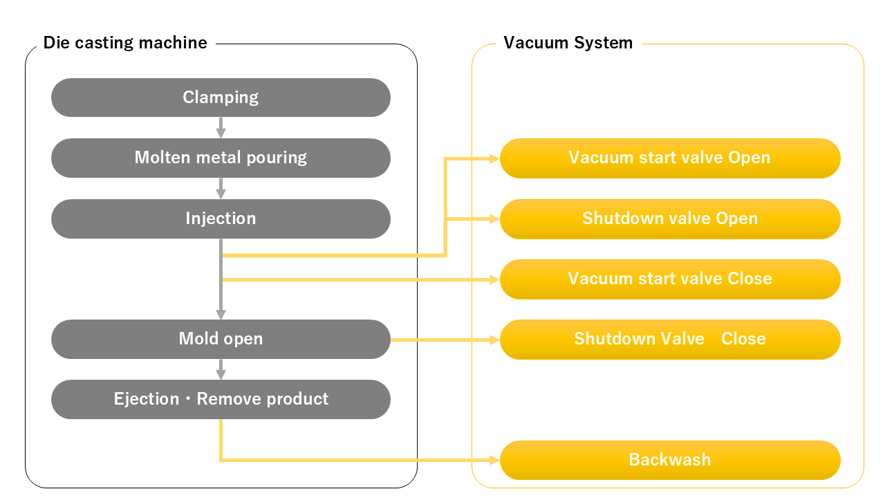 This Vacuum System is compatible with medium to large-sized die casting machines. If you tell us the size of your die-casting machine, we will suggest an appropriate Vacuum System and design it to suit your factory layout.